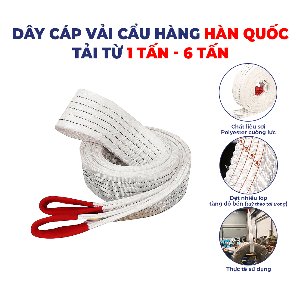 Dây cáp vải Hàn Quốc đạt các tiêu chẩn về chất lượng an toàn khi sử dụng tại Việt Nam.