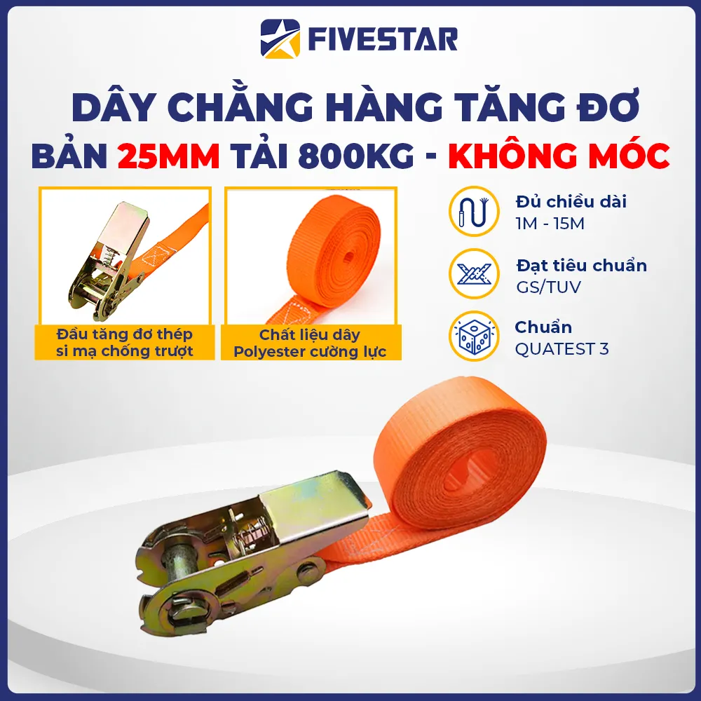 - 6. Vì sao nên chọn mua dây tăng đơ bản 25mm tải 800kg không móc của Fivestar Việt Nam.