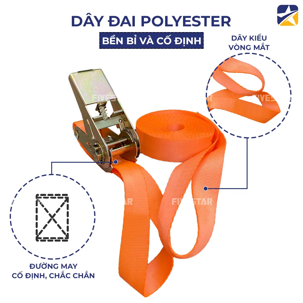 Dây tăng bản 25mm tải 800kg 2 đầu mắt giúp tối ưu cho việc chằng buộc hàng hóa trên xe tay ga đời mới, ngoài ra còn có thể làm dây căng bạt sự kiện. đầu tăng đơ bằng thép không gỉ với dây đai 100% polyester cho độ bền lâu dài. Đây là mẫu dây chằng hàng tăng đơ cực kì phổ biến tại Việt Nam.