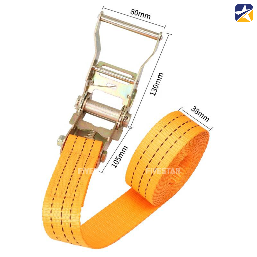 Thành phần chịu lực chính của bộ dây là dây đai Polyester bản rộng 38mm, được dệt từ 100% Polyester cường lực, dây đai này có khả năng chịu lực tốt được thiết kế chuyên dụng cho các ứng dụng chằng hàng với tải trọng lên đến 2 tấn.
