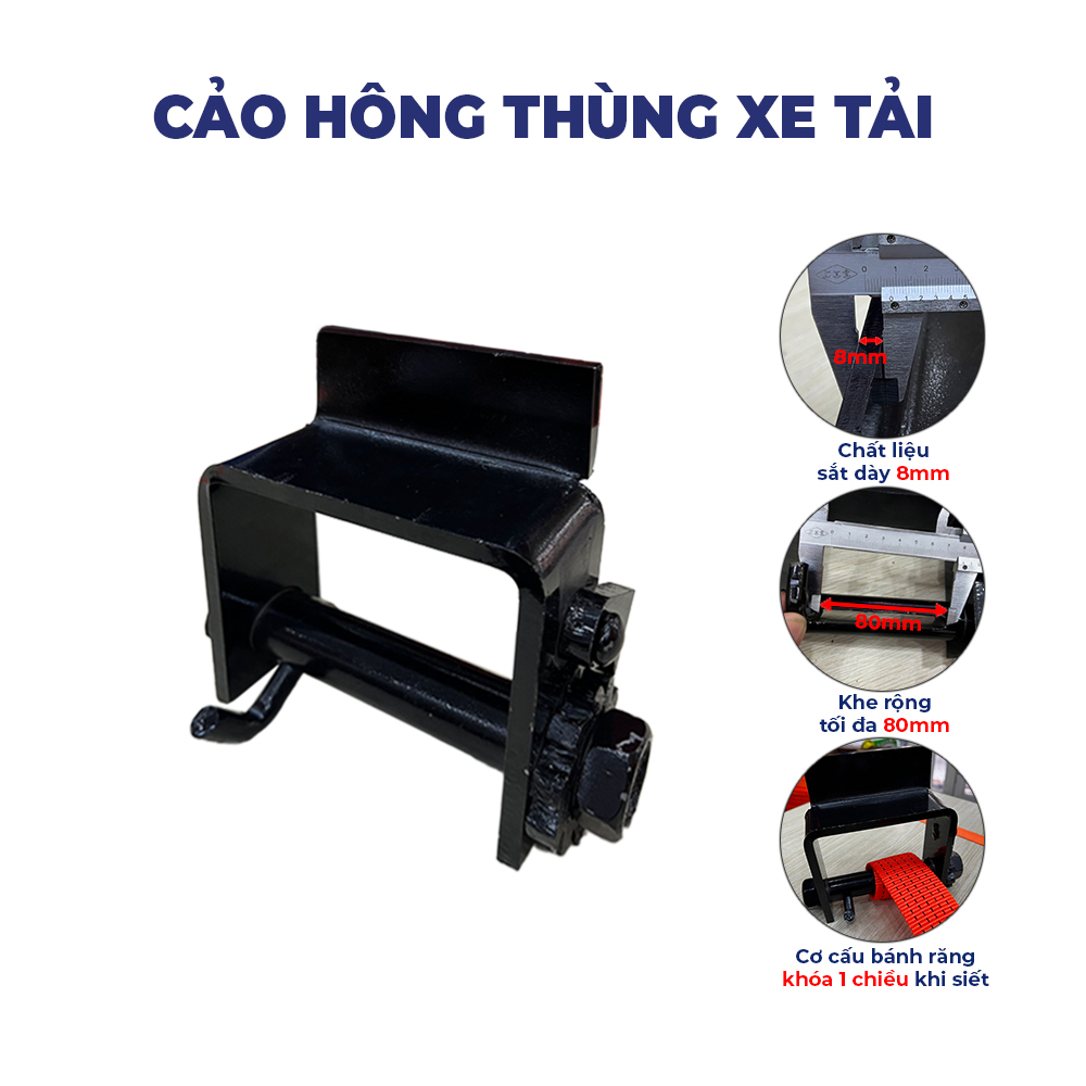 Bản rộng khe đút dây là 75mm nên bạn có thể thoải mái sử dụng các loại dây đai Polyester chằng hàng có kích thước phổ biến như (25mm, 38mm, 50mm, 75mm) ngoài ra bạn có thể sử dụng cả dây dù, và dây bẹ xanh.